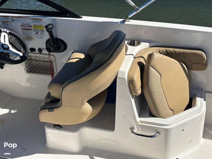 The room of a pontoon boat on deck and a fiberglass hull below! Mercury 150 engine! This 2023 Bayliner VR6 OB! Ready to go!