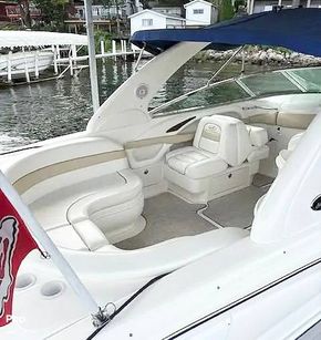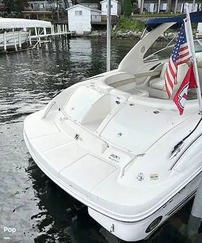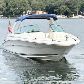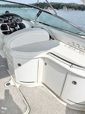 This Sea Ray makes room for the whole crew in its plush bow and cockpit seating. Stretch out under the double bimini shades. Guests will love the wet bar, on-deck refrigerator, and cooler storage. The head compartment provides privacy and convenience when away from the dock and includes a Vacuflush head.